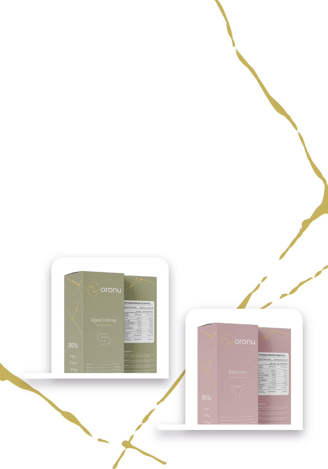 Conoce nuestras formulasCada caja de Oronu cubre tus necesidades nutricionales de manera integral y sin dificultades.